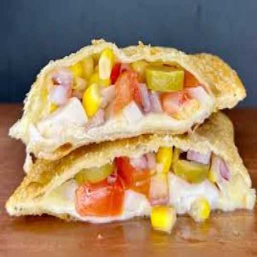 Pão, mussarela, presunto, alface, tomate e milho